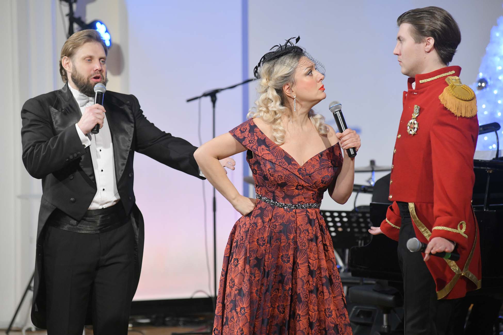 В зрительном зале — лёгкий, искромётный концерт комической театральной музыки из оперетт таких композиторов, как Штраус «Летучая мышь»; Кальман «Сильва», «Марица», «Принцесса цирка»; Легар «Весёлая вдова»; Оффенбах «Перикола»; Дунаевский «Вольный ветер». Оперетта — это жанр, который часто называют «королевой легкости», где музыка, юмор и красочные постановки создают праздничное настроение, часто с элементами пародии и любовными интригами, а её лучшие образцы стали классикой мирового и советского кино.