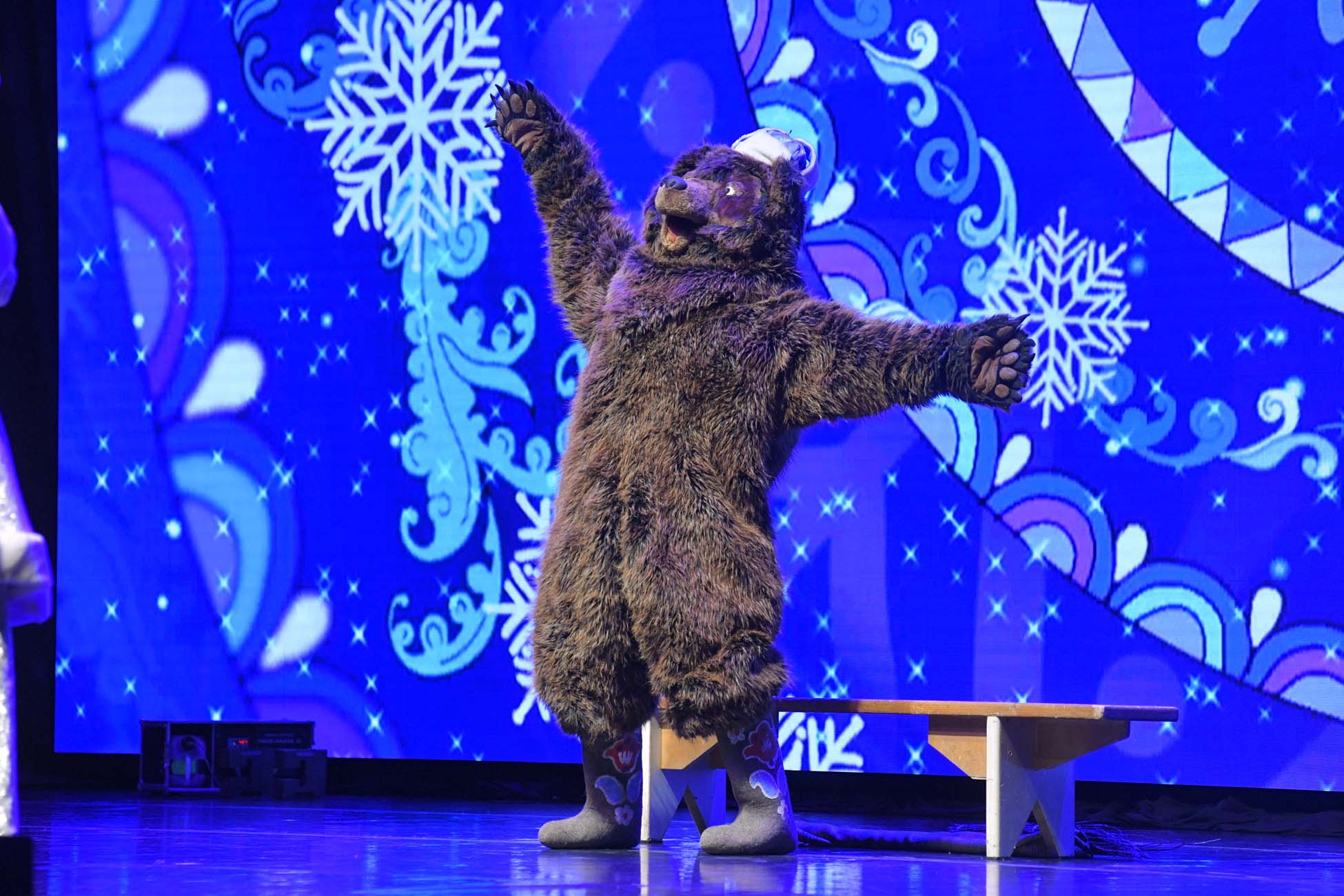 Дед Мороз поздравит зрителей со сцены. За 30 минут до спектакля в фойе их ждут игры, хоровод вокруг ёлки со сказочными героями и возможность сфотографироваться с Дедом Морозом.